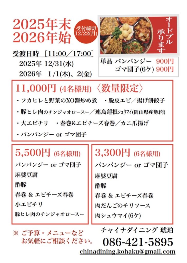 ※売り切れ、変更の場合もありますので、確認等はお電話にてお問い合わせください。